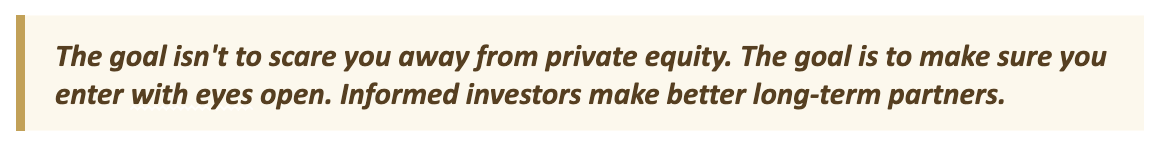 This article is the honest breakdown I wish I'd had earlier. The truth. Just what you need to know to decide if private equity belongs in your portfolio